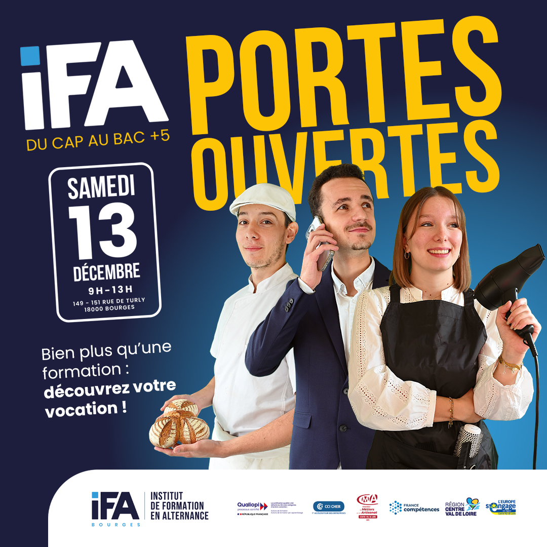 L’IFA vous ouvre ses portes ! Vous cherchez une formation qui vous ressemble ? Ne manquez pas nos Portes Ouvertes, le samedi 13 décembre, de 9h à 13h ! C’est l’occasion idéale pour poser toutes vos questions, confirmer un choix d’orientation…