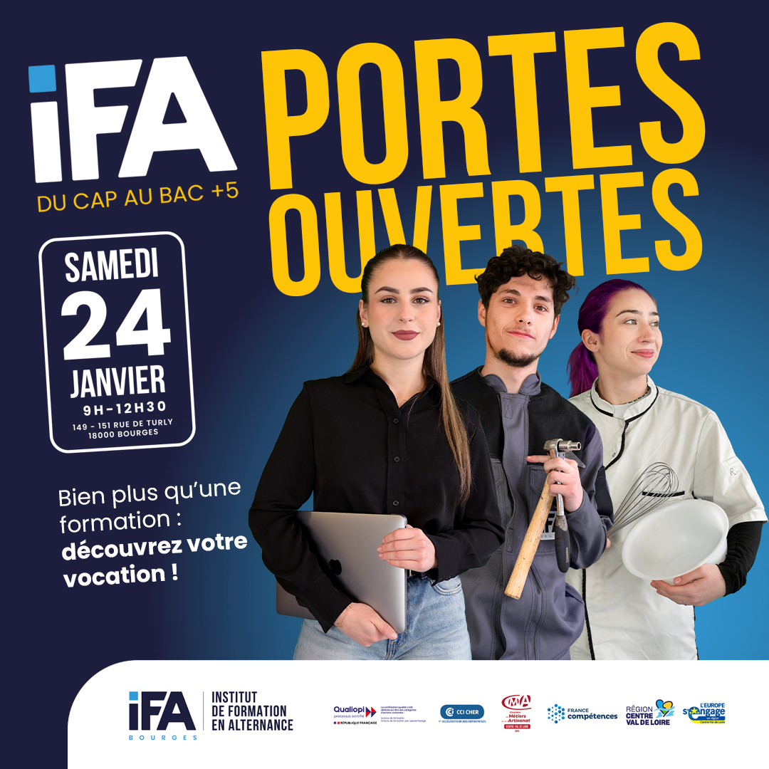 L’IFA vous ouvre ses portes ! Vous cherchez une formation qui vous ressemble ? Ne manquez pas nos Portes Ouvertes, le samedi 24 janvier 2026 de 9h à 12h30 ! C’est l’occasion idéale pour poser toutes vos questions, confirmer un choix d’orientation…